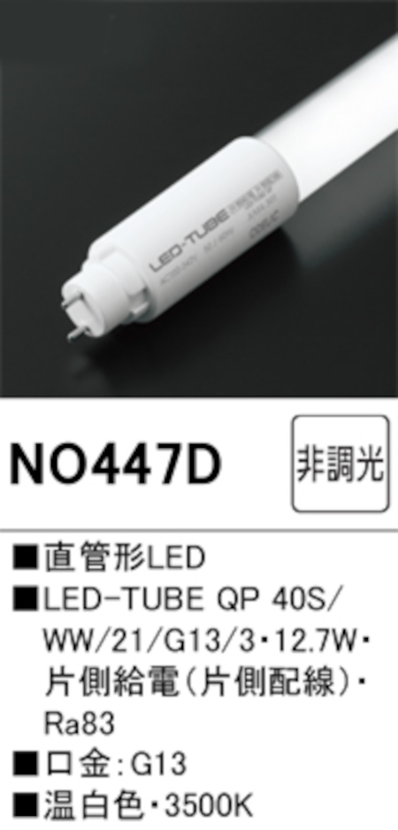 オーデリック NO447D 直管形LEDランプ 40形 非調光 片側給電・片側配線 FL40W相当 口金:G13 3500K 温白色