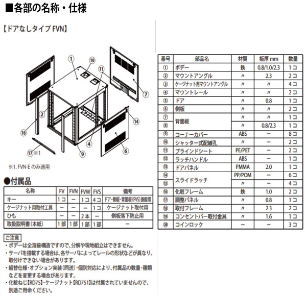 FVN-E ドアなしタイプ EIA規格