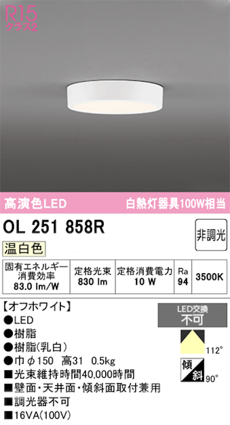 オーデリック OL251858R 小型LEDシーリングライト 非調光 白熱灯器具100W相当 温白色