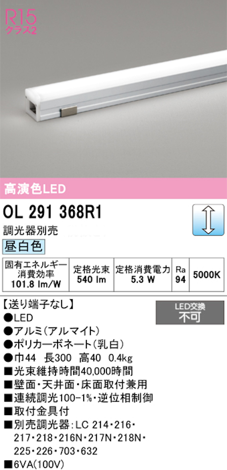 オーデリック OL291368R1 LED間接照明 シームレスタイプ スタンダードタイプL300送り端子なし 連続調光 昼白色