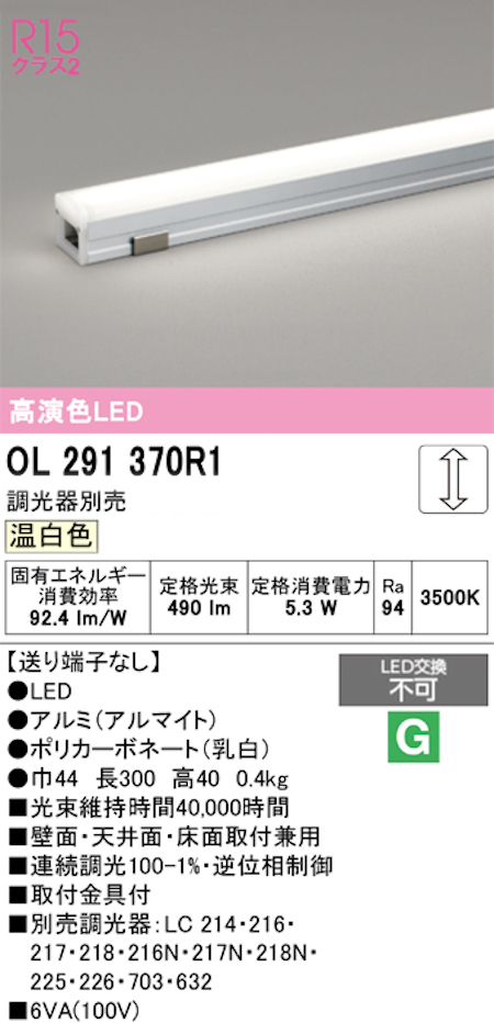 オーデリック OL291370R1 LED間接照明 シームレスタイプ スタンダードタイプL300送り端子なし 連続調光 温白色
