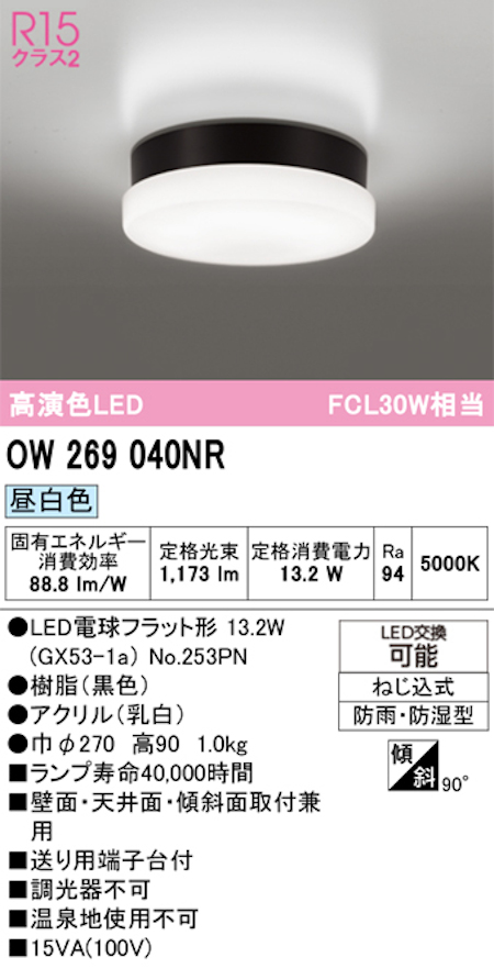 オーデリック OW269040NR 屋外用LED共用灯 防雨・防湿型 R15クラス2 FCL30W相当 昼白色
