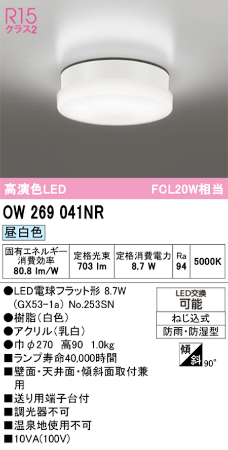 オーデリック OW269041NR 屋外用LED共用灯 防雨・防湿型 R15クラス2 FCL20W相当 昼白色