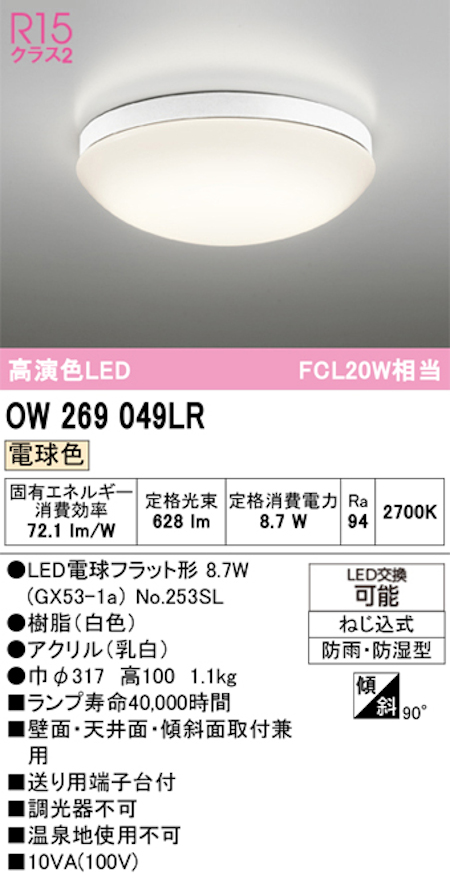 オーデリック OW269049LR 屋外用LED共用灯 防雨・防湿型 R15クラス2 FCL20W相当 電球色