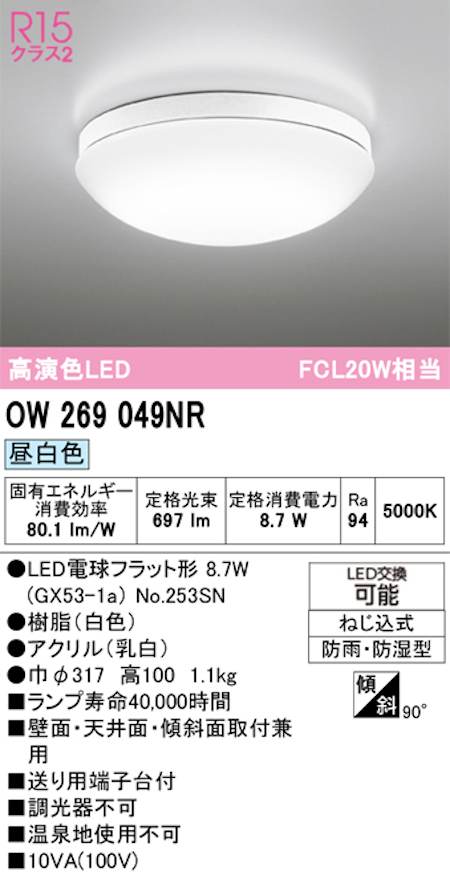 オーデリック OW269049NR 屋外用LED共用灯 防雨・防湿型 R15クラス2 FCL20W相当 昼白色