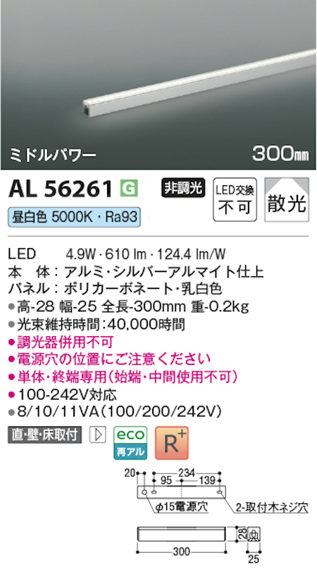 コイズミ照明 AL56261 間接照明 ライトバー 非調光 300mm 昼白色