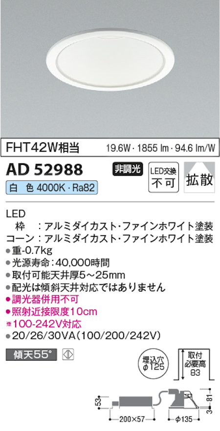 コイズミ照明 AD52988 M型コンフォートベースダウンライト 非調光 埋込穴Φ125 FHT42W相当 白色
