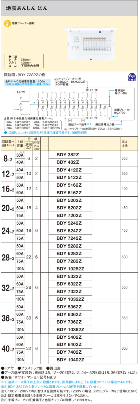 パナソニック BDY4122Z 住宅分電盤 フレキシード 地震あんしんばん 感震ブレーカ搭載 主幹40A 回路数12回路スペース2