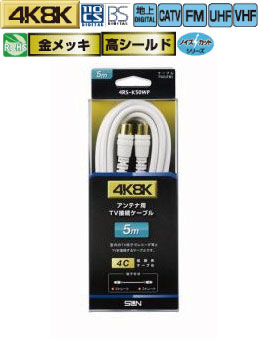 サン電子 2FL-K50WP テレビ接続ケーブル 5m 両端高シールドプラグ付 太2.5C F形コネクタ-L形プラグ 色白