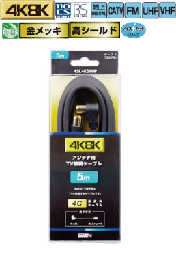 サン電子 4SL-K50BP テレビ接続ケーブル 5m 太4C ストレートプラグ-L形プラグ 色黒