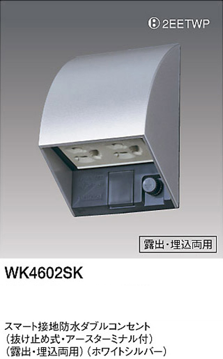 パナソニック WK4602SK スマート接地防水ダブルコンセント 抜け止め式 アースターミナル付 露出埋込両用 色 ホワイトシルバー
