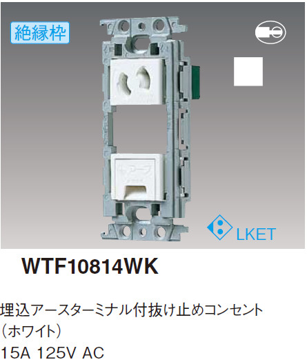 パナソニック WTF10814WK 埋込アースターミナル抜け止めコンセント 絶縁枠付 15A 125V AC 色 ホワイト