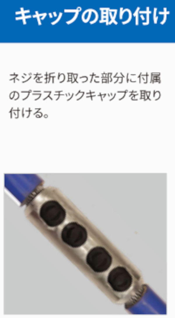 そのネジは規定のトルクに達すると(適切な接続が行われた)、ねじ切れる構造となっており、特別なトルク管理は不要です。