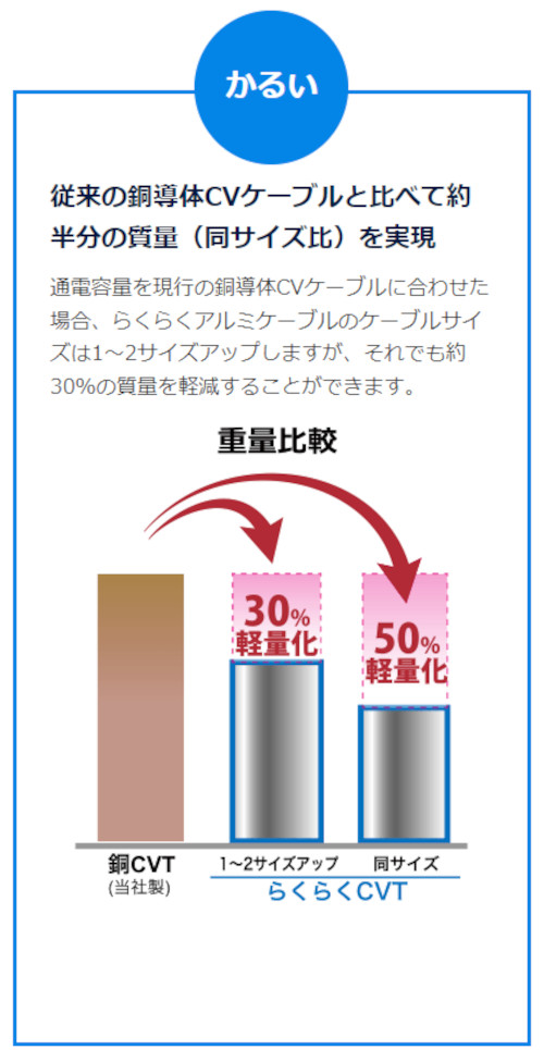 □ 新規で銅導体のCVケーブルからアルミ導体のCVケーブル(らくらくアルミケーブル)への切替をご検討中のお客様へ