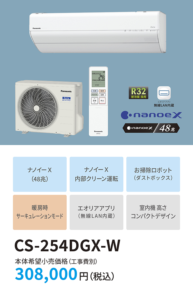 【翌営業日出荷】【数量限定】【配達地域限定】パナソニック CS-254DGX-W 主に8畳用 2.5kW クリスタルホワイト 冷暖房除湿タイプ ルームエアコン 2024年モデル