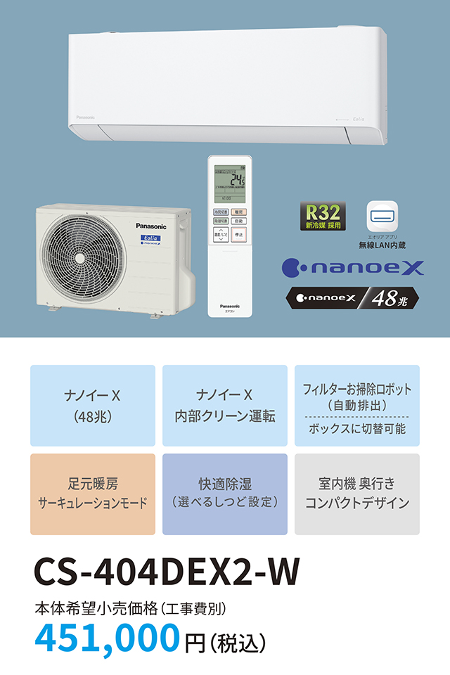 【翌営業日出荷】【数量限定】【配達地域限定】パナソニック CS-404DEX2-W 主に14畳用 4.0kW クリスタルホワイト 冷暖房除湿タイプ ルームエアコン 2024年モデル