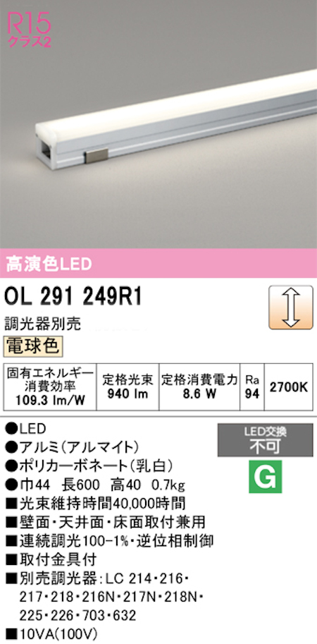 オーデリック OL291249R1 LED間接照明 シームレスタイプ スタンダードタイプL600 非調光 電球色