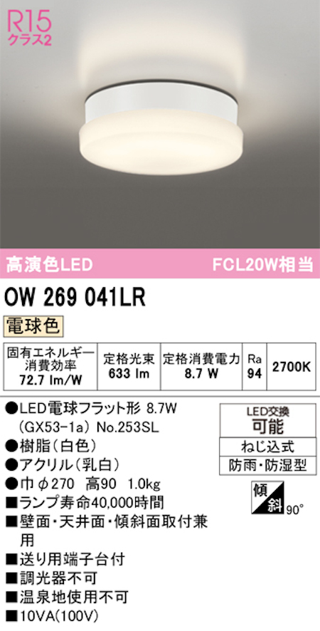 オーデリック OW269041LR 屋外用LED共用灯 防雨・防湿型 R15クラス2 FCL20W相当 電球色