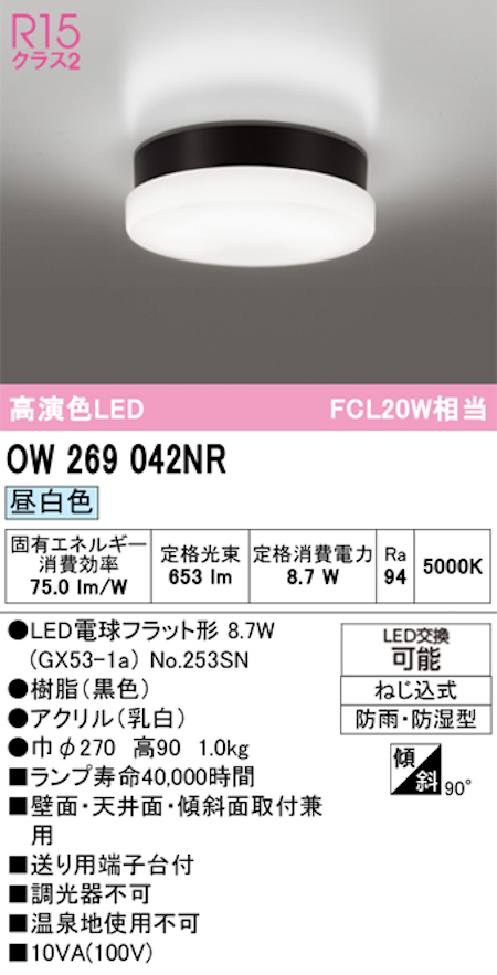 オーデリック OW269042NR 屋外用LED共用灯 防雨・防湿型 R15クラス2 FCL20W相当 昼白色
