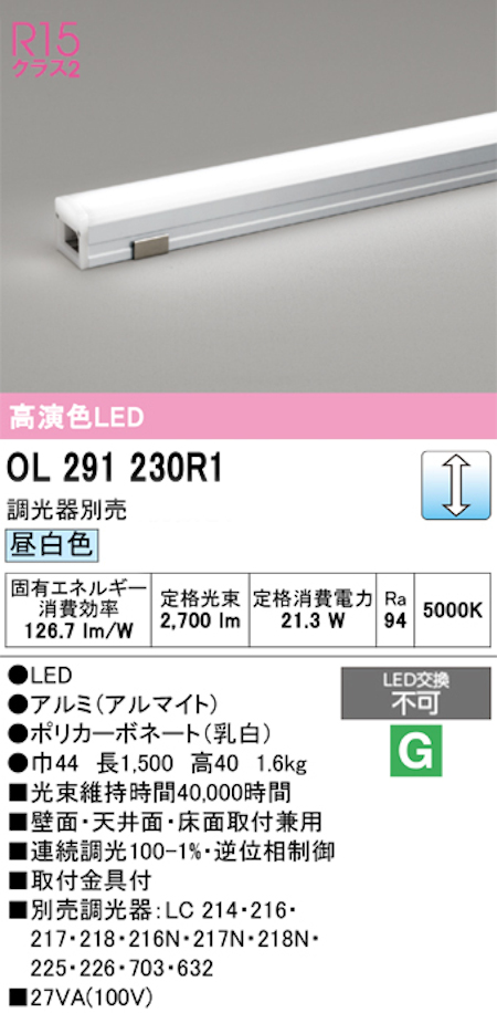 オーデリック OL291230R1 LED間接照明 シームレスタイプ スタンダードタイプL1500 非調光 昼白色