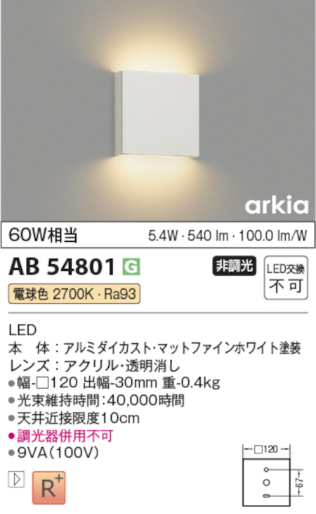 コイズミ照明 AB54801 LED小型照明 壁面用 密閉型 60W相当 電球色 マットファインホワイト