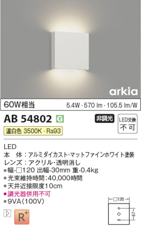 コイズミ照明 AB54802 LED小型照明 壁面用 密閉型 60W相当 温白色 マットファインホワイト