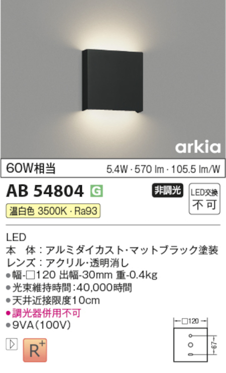 コイズミ照明 AB54804 LED小型照明 壁面用 密閉型 60W相当 温白色 マットブラック