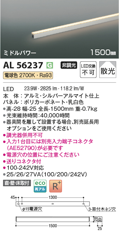 コイズミ照明 AL56237 間接照明 ライトバー 非調光 1500mm 電球色