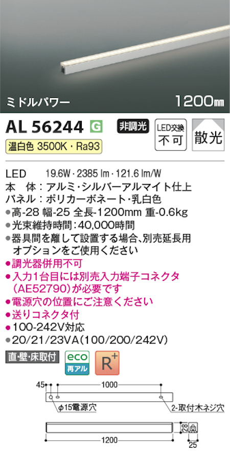 コイズミ照明 AL56244 間接照明 ライトバー 非調光 1200mm 温白色