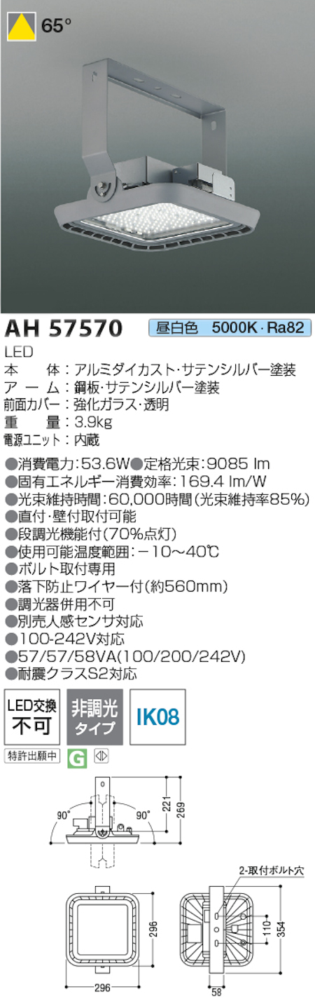 ![コイズミ照明 AH57570 防雨型屋内用ハイパワー投光器 非調光タイプ HID250W相当[HID250W相当(メタハラ250W相当)] 昼白色](/html/upload/save_image/ah57570.jpg)
