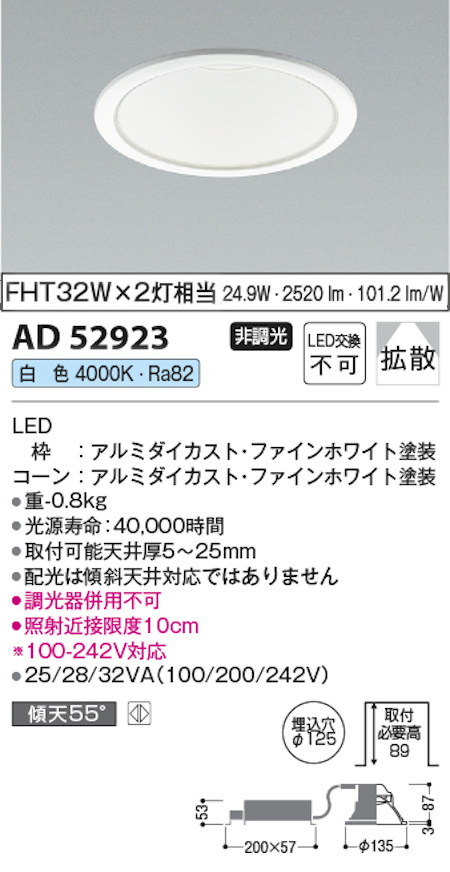コイズミ照明 AD52923 M型コンフォートベースダウンライト  非調光 埋込穴Φ125 FHT32W×2灯相当 白色