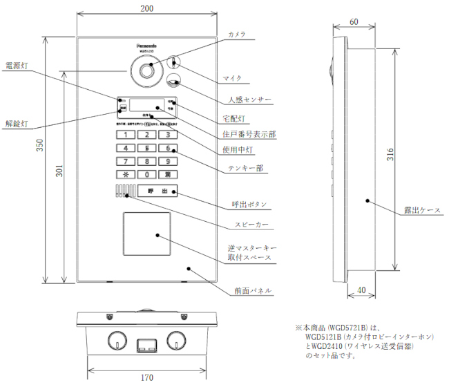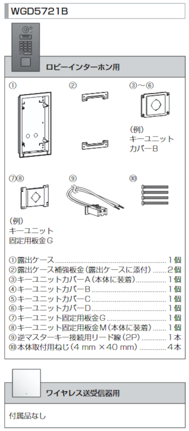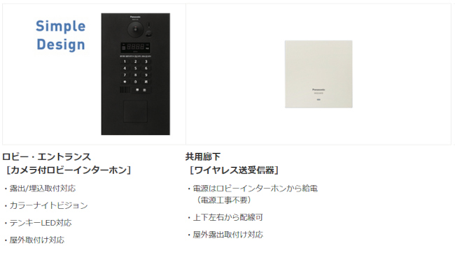 パナソニック WGD5721B マンションHA ワイヤレスインターホンカメラ付ロビーインターホン・ワイヤレス送受信器セット AirEZ