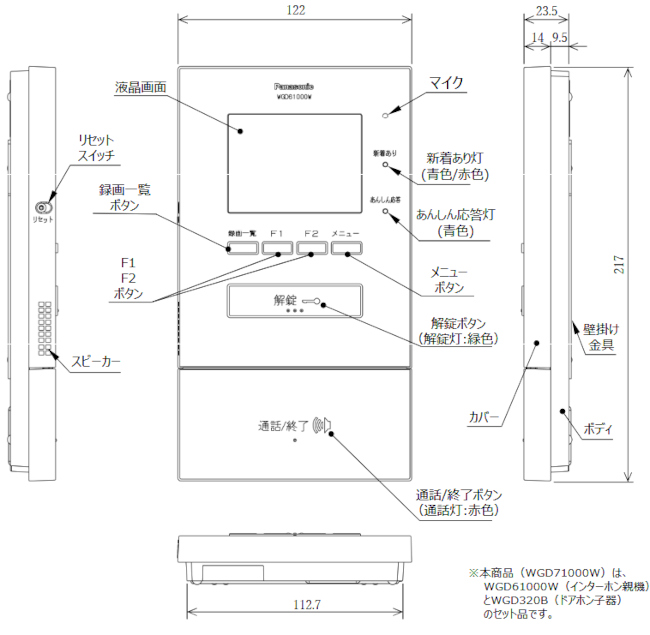 パナソニック WGD71000W マンションHA ワイヤレスインターホンインターホン親機・ドアホン子器セット AirEZ