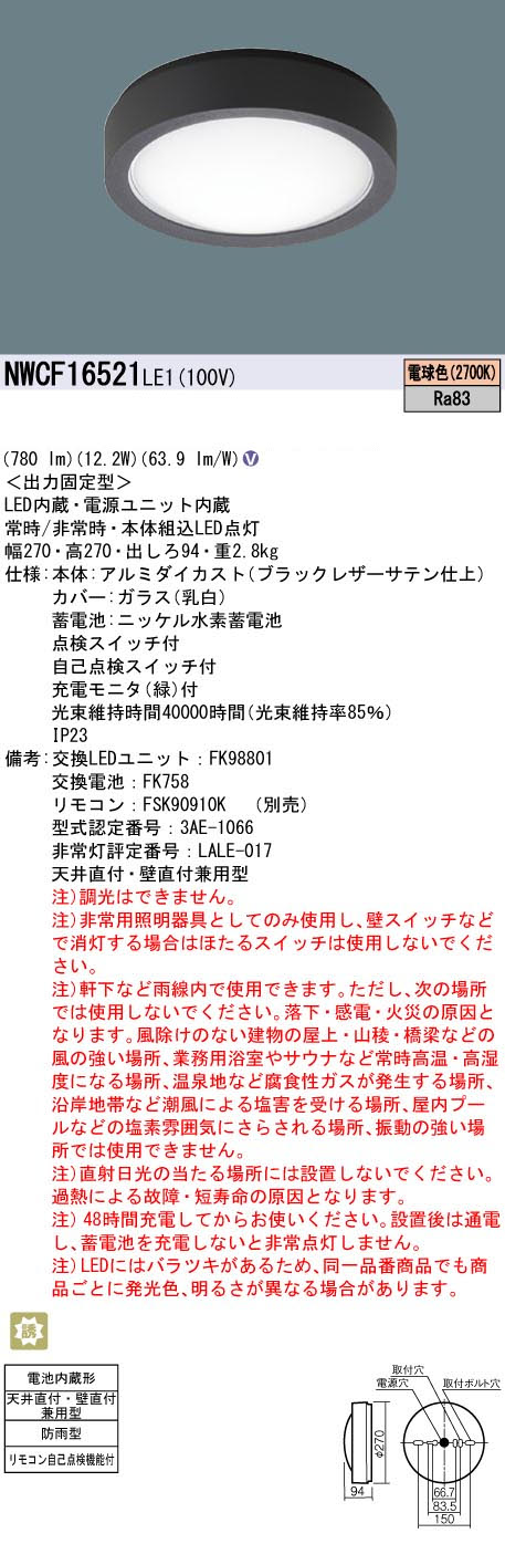 パナソニック NWCF16521LE1 防雨型シーリング階段灯 壁・天井直付型 ベーシック ブラック高光束タイプ 780lm 電球色