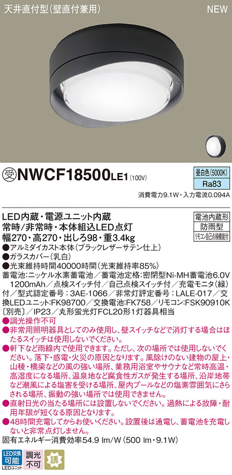パナソニック NWCF18500LE1 防雨型シーリング階段灯 壁・天井直付型 フード ブラック低光束タイプ 700lm 昼白色