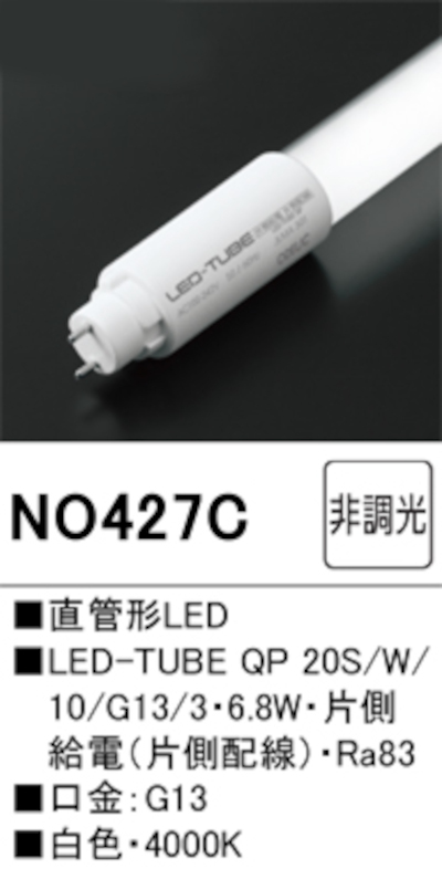 オーデリック NO427C 直管形LEDランプ 20形 非調光 片側給電・片側配線 FL20W相当 口金:G13 1050lm 白色