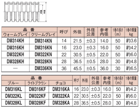 パナソニック DM316KN パナフレキエース PF単層波付管PFS 50m巻 色 クリームグレー(マンセル5Y7.2/1.4)