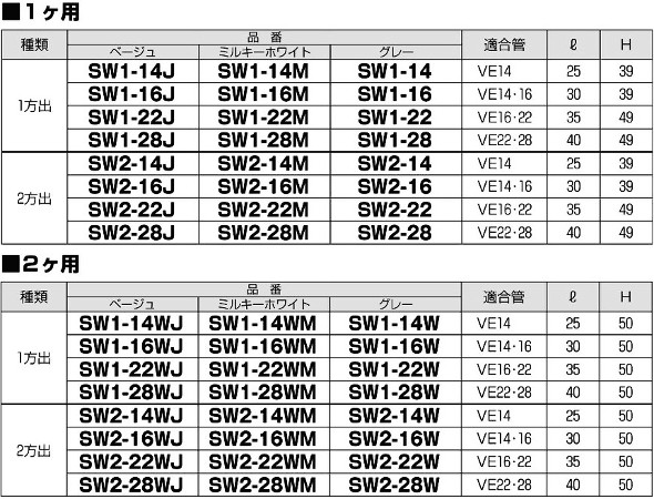 ・VE管を使った配線工事等でコンセント、スイッチ等の配線器具の取り付けに使用可能。