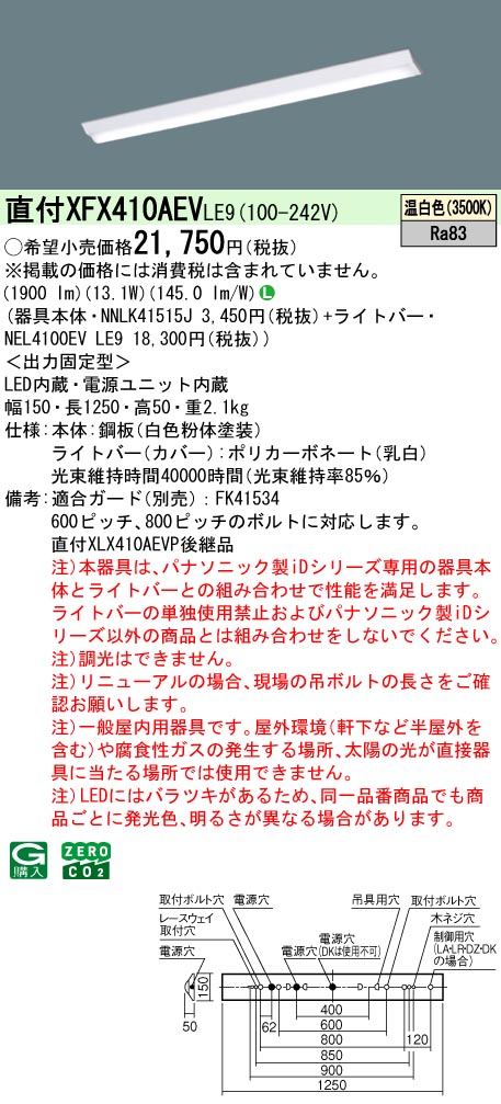 パナソニック XFX419NELLE9 ID シリーズ 40 型 リニューアル専用器具本体 直付型 iスタイル 節電 2000 lm 電球色