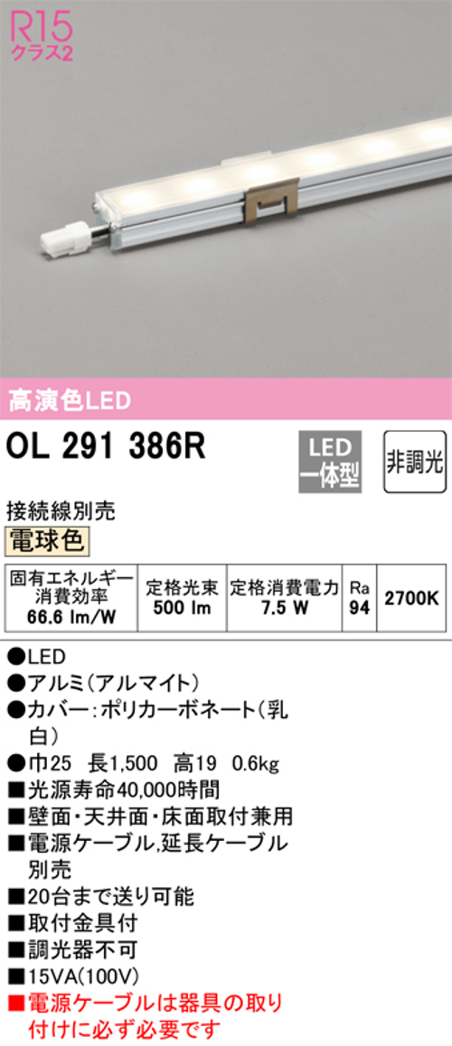 オーデリック OL291249R1 LED間接照明 シームレスタイプ スタンダードタイプL600 非調光 電球色