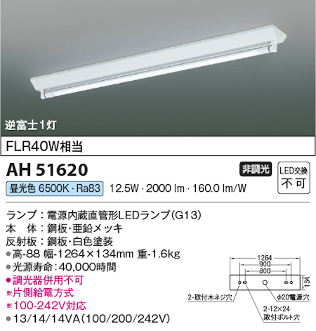 コイズミ照明 AH51620 LEDベースライト 電源内蔵直管形 LEDランプ搭載[G13口金] 逆富士型 FLR40W x 1灯相当 昼白色