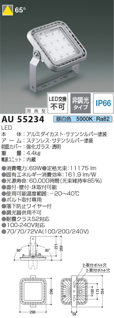 コイズミ照明 AE55236 防雨型屋内用ハイパワー投光器専用台座 本体色:サテンシルバー